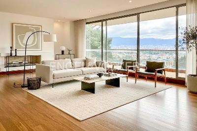 Moderno y exclusivo apartamento en conjunto cerrado, rodeado naturaleza, con club house , jardines y parqueaderos de visitantes.rEl ascensor privado lleva directo al apartamento que recibe con amplia y luminosa zona social con ventanales de piso a techo , estudio independiente , baño social y salida a la terraza que ofrece magnifica vista a la ciudad. Cuenta con una confortable cocina interior acceso independiente a la misma , ventilación natural , zona de ropas , cuarto y baño del servicio. En la zona privada se encuentra un generoso family room con salida a balcón , y las cuatro amplias habitaciones muy iluminadas, todas con baño en suite , la principal con walk in closet. Complementan amenidades de club house , 4 parqueaderos y depósito.rEste apto se complementa con 4 parqueaderos y depósito. El canon mensual es de $15.000.000 incluyendo administración de $ 2.051.000