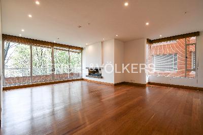 A este amplio e illuminado apartamento se ingresa directo por el asensor privado al área social que consta de sala con chimenea, comedor y un estudio independiente. Tiene un balcón al cual se accede desde la zona social y el estudio. La cocina es cerrada y cuenta con espacio para comedor auxiliar. Tiene una amplia zona de ropas y cuarto y baño de servicio. En el área privada hay 3 habitaciones, la principal con walk-in closet y baño en suite, dos auxiliares comparten baño y una de ellas tiene walk in closet. El apartamento se complementa con 3 parqueaderos, dos en línea y uno independiente, y un depósito. El edificio cuenta con salón comunal, gimnasio, zona infantil, jaula de golf, sauna y turco. Además caldera, planta eléctrica de suplencia total y parqueaderos de visitantes. El apartamento tiene dos entradas una principal donde el ascensor llega a la puerta y una entrada de servicio.rEl valor de arriendo es $18.885.000 incluyendo administración