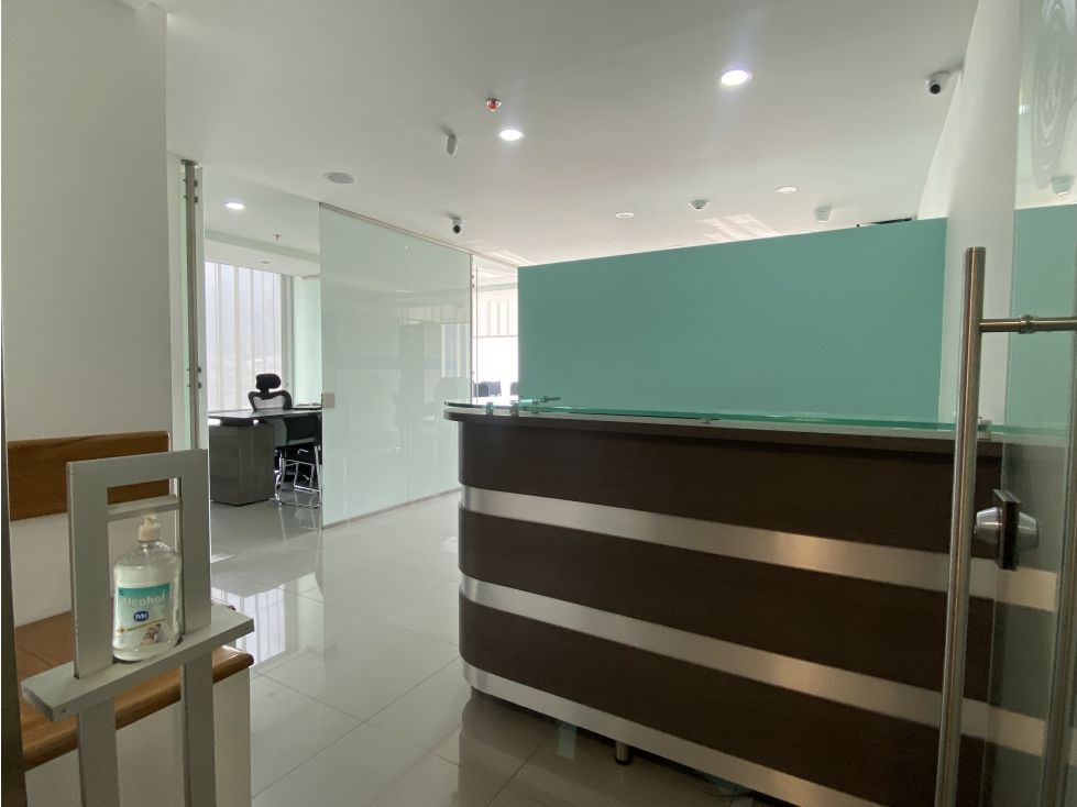 Cod 9155FR838 Vendo hermosa Oficina en el Centro de Bogotá en el BD Bacatá, excelente ubicación, vías de acceso Calle 19, Carrera quinta, rodeada de bancos, universidades,en la zona de la Candelaria, cerca a la casa de Nariño, Magisterios, zona comercial, con espectacular vista a los cerros,esquinera, pisos en porcelanato, iluminación led, red de incendio, altura 2.70 mts, en piso 18, acceso por ASCENSOR, actualmente consta de dos oficinas internas una de ella con baño privado,por su ubicación tiene muy buena entrada de luz natural, aréa de cocienta cerrada, recepción independiente con una pequeña sala de espera,espacio amplio de oficina abierta con archivador y un parqueadero propio cubierto en sotano; Cuenta con excelentes acabados y sistema de ingreso con huella. El edificio cuenta con zonas para lunch, baños por cada piso,recepción y parqueaderos. Gran oportunidad! El complejo BD Bacatá es de los edificios más altos de Colombia.