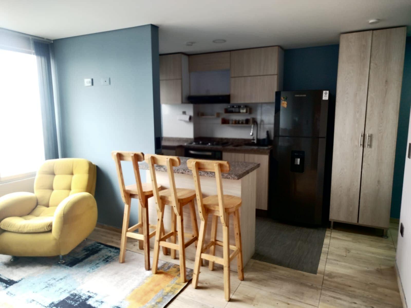 Apartamento de tres habitaciones con estudio dos baños sala comedor y cocina integral con barra americana ubicado en un cuarto piso con ascensor lo que brinda comodidad y exclusividad en la zona Cuenta con excelente luz natural todo el día y una distribución funcional que aprovecha cada espacio con seis áreas bien definidas Estrato tres con administración económica de setenta y ocho mil pesos mensuales No tiene parqueadero ni depósito pero está cerca de avenidas principales como calle ochenta avenida Cali y avenida Boyacá así como de centros comerciales como Portal ochenta Titan plaza y Nuestro Bogotá también de colegios y universidades como Minuto de Dios y del hospital Santa María del Lago Con solo cuatro años de construido este apartamento es ideal para quienes buscan confort ubicación y buena inversión en una zona urbana estratégica con fácil acceso a transporte público como Transmilenio y SITP