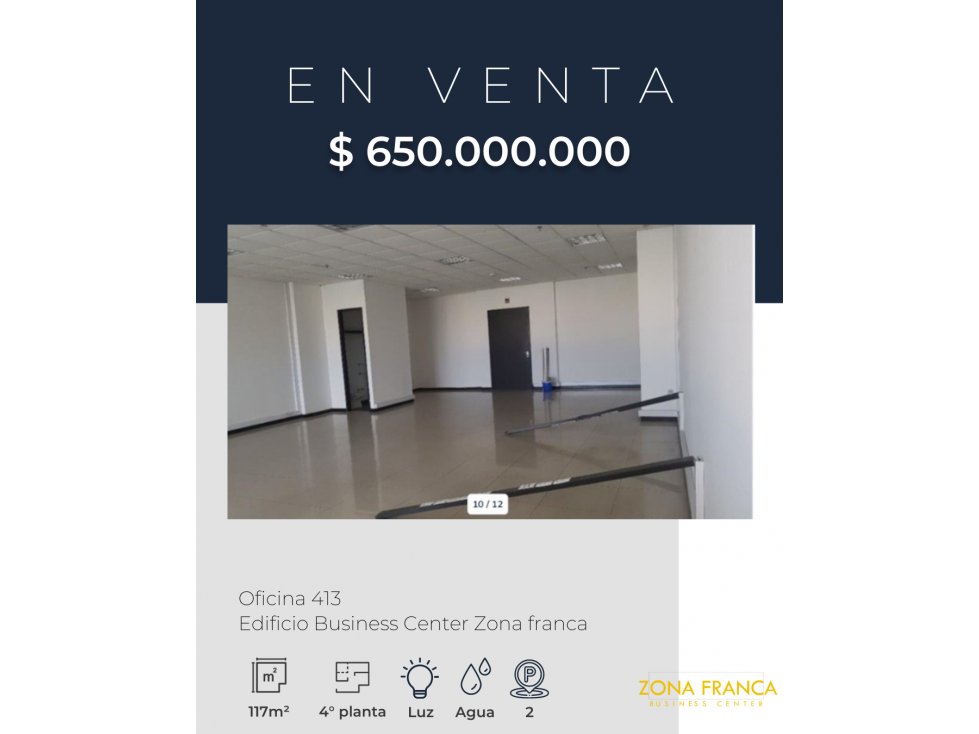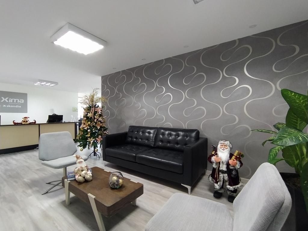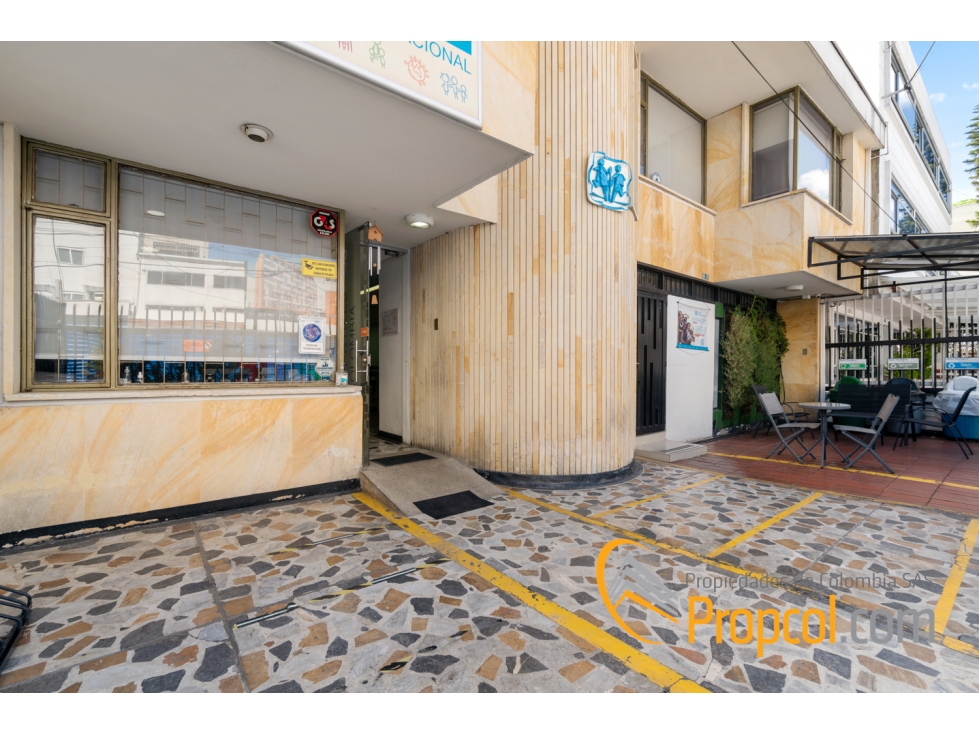 Oficina de 115 metros ubicada dentro del Centro Comercial y Financiero Avenida Chile. Oficina exterior, 9no piso, con linda vista, excelente iluminación natural, cálida, con amplio espacio para varios puestos de trabajo, 2 baños, oficina principal con sala y baño privado, 2 salas de reuniones, cocineta, archivo, recepción. Los pisos en alfombra de trafico pesado apto para remodelar. 2 parqueaderos. Todos los servicios. 2 ascensores y baños adicionales en zonas comunes. El Centro comercial cuenta con excelente seguridad, cuenta con bancos, restaurantes, cafés, gimnasio, supermercados, entre otros. Cómodas vías de fácil y rápido acceso como Calle 72, Carrera 7ma, Avenida Caracas, buen transporte publico y cercanía a Transmilenio. 61-1632