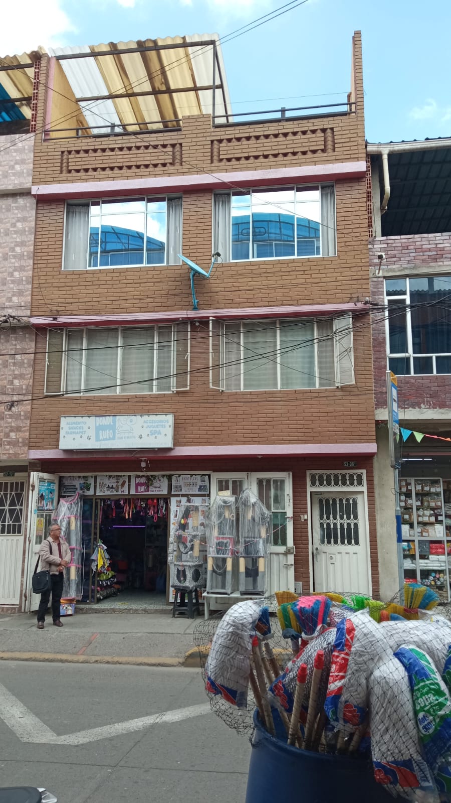 Primer piso: Local comercial, entrada principal y apartaestudio: habitacion, sala-comedor, cocina, baño, patio de ropas, independiente, segundo piso: Apartamento grande: Tres habitaciones con closet, cocina integral, comedor, baño, zona de ropas, sala y baño, Tercer piso: Duplex, tres habitaciones, dos baños. Comedor y cocina. Cuarto piso: