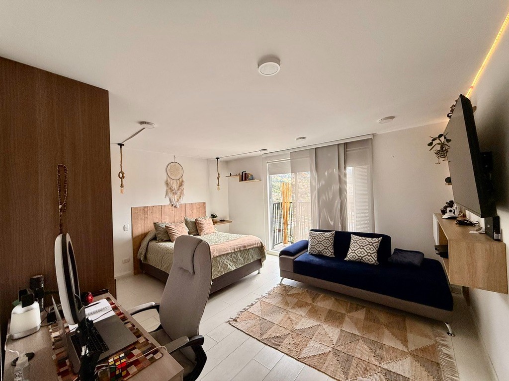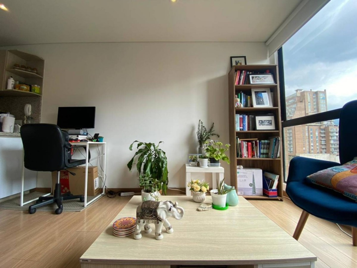 Acogedor e iluminado aparta-estudio de 35mt2, ubicado en la 170 con 7ma en piso 14 con excelente vista panorámica, 3 años de construido, estrato 4, consta de 1 alcoba con balcón, 1 baño, cocina, zona de lavandería y depósito.