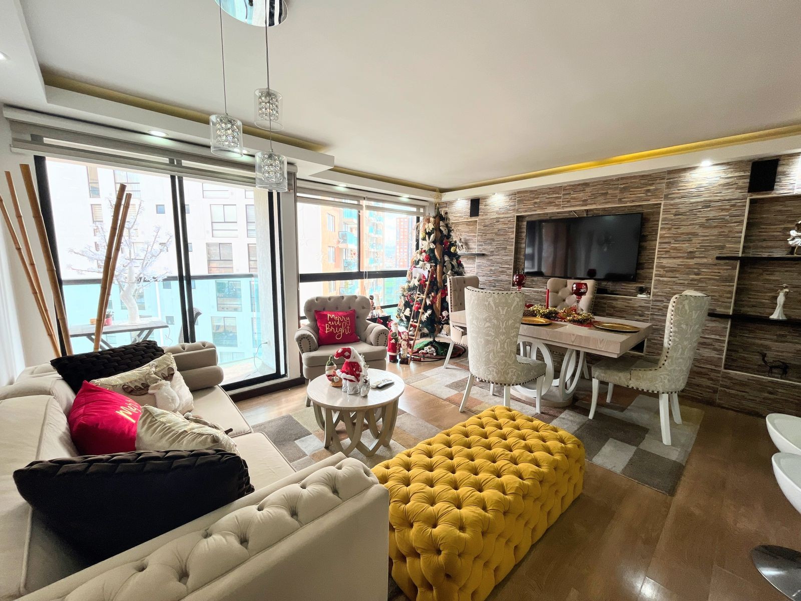 Apartamento esquinero, casi nuevo (menos de 5 años), ubicado en sexto piso, con vista totalmente despejada y excelente iluminación gracias a sus ventanales de piso a techo.